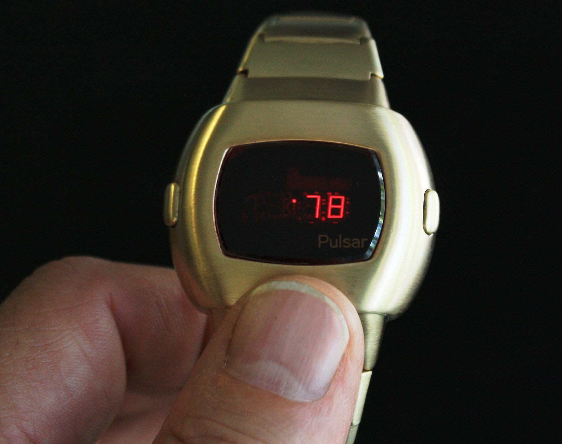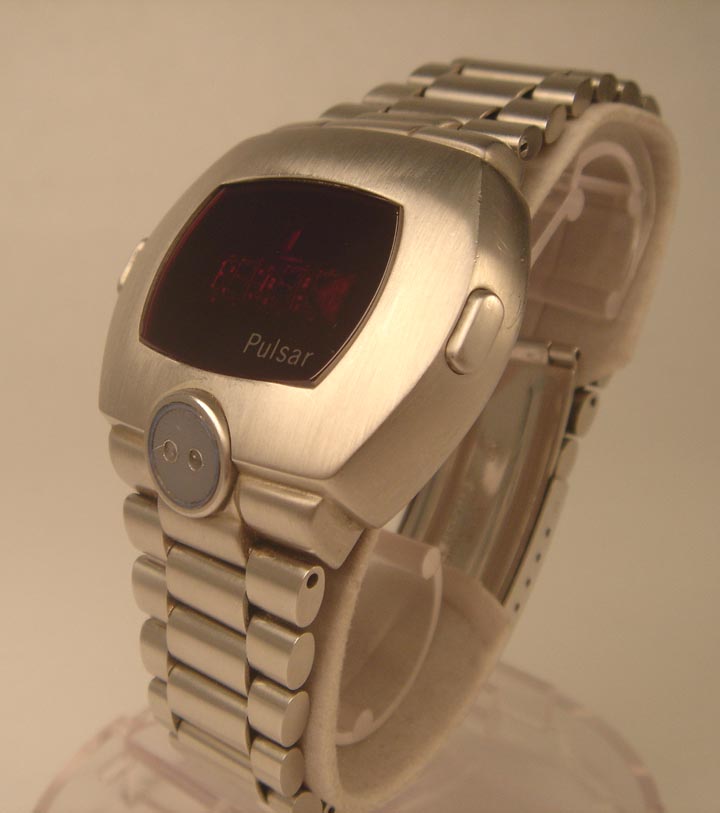 Pulsaroooooooooooooooo Description: This very Men's model is one of only two watches to exist. This Asian model was produced for the smaller wrist typical of Asian males. This all Stainless Steel watch is Working and is in Near Flawless condition with all of the original links in the bracelet. The electronic module is original to this model and has been tested with no problems. The case and bracelet have been professionally restored. The red Mineralite crystal has no chips or scratches! The case and bracelet are original so the watch looks as it did when it left the factory. Included: 2nd Generation Box with original instructions in one of the selected languages from the multi-language fold-out. Also, a flat caseback wrench. Minimum selling price $1,200.00 |